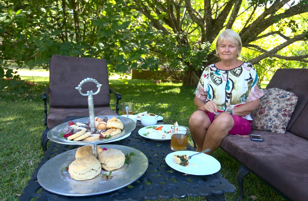 Afternoon tea at Huntington Lodge. Doesn’t reach South African standard and anyway no bubbly.